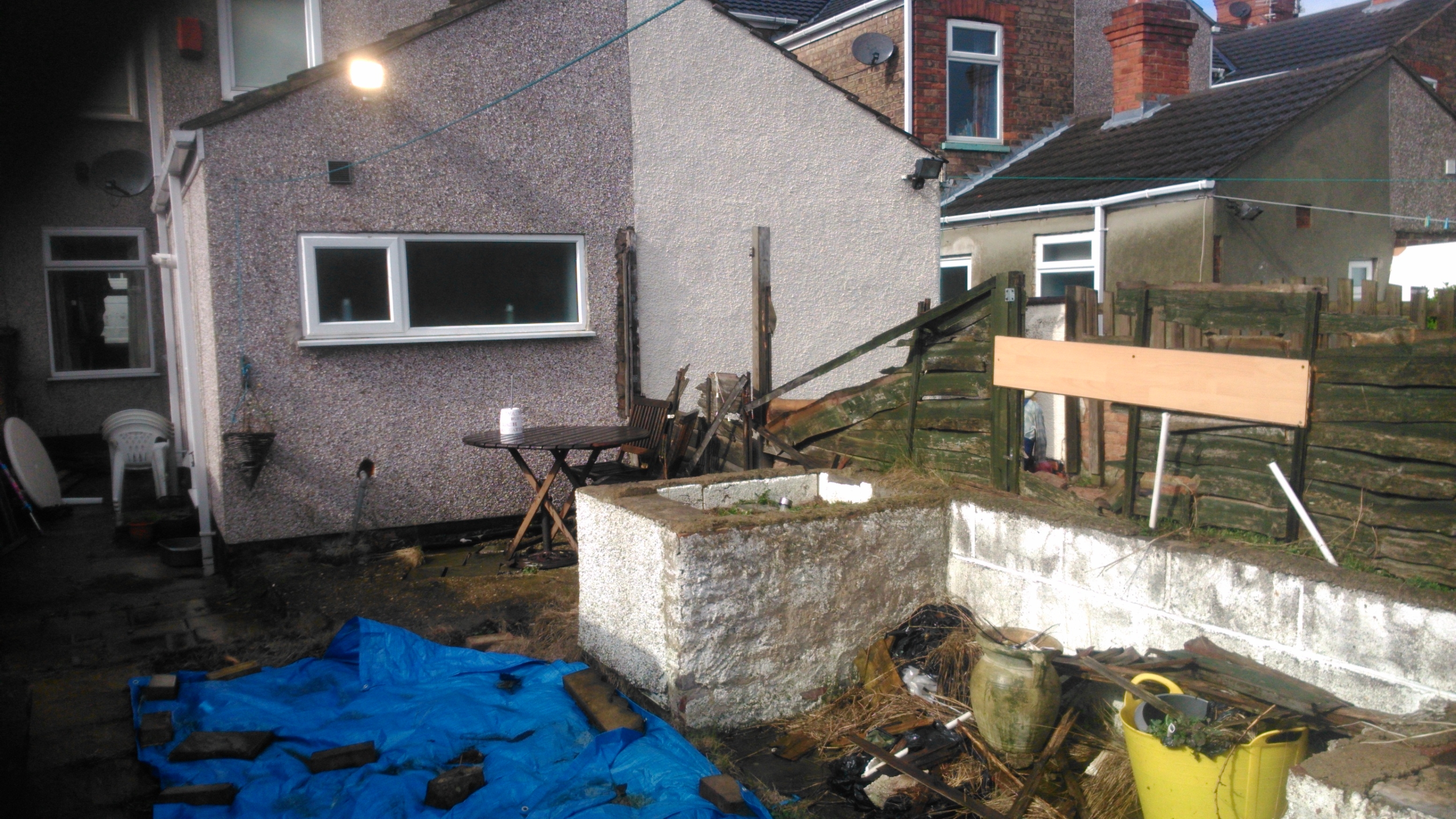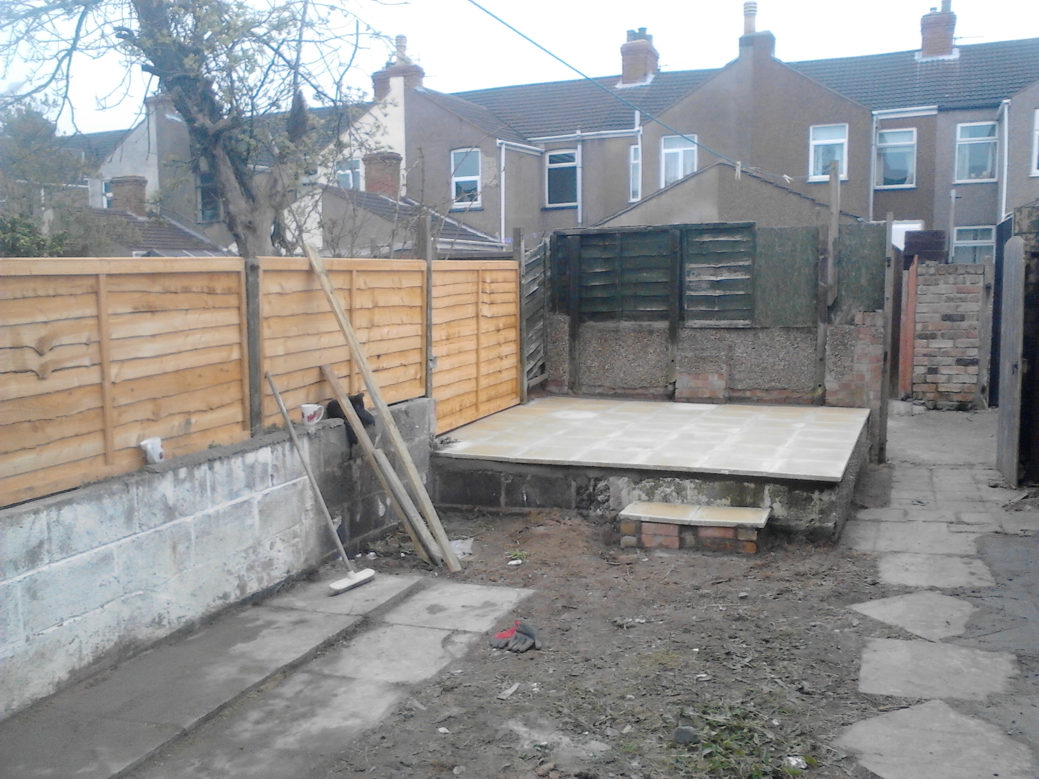 Refurbishment of garden area , removing concrete planters, - fitting new fence panels and laying a new patio area